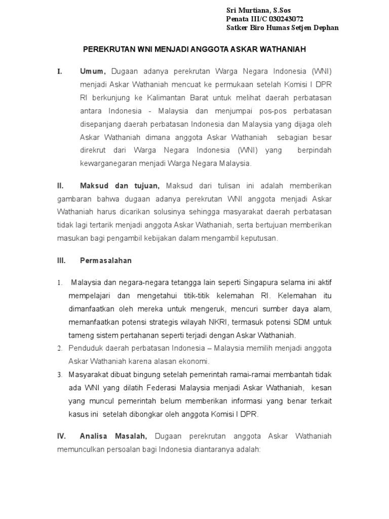 Umum Dugaan Adanya Perekrutan Warga Negara Indonesia Wni