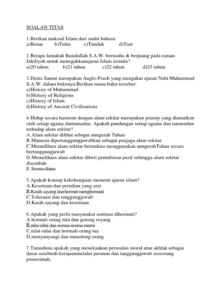 Soalan Titas Islamic History And Civilization Iik Studocu
