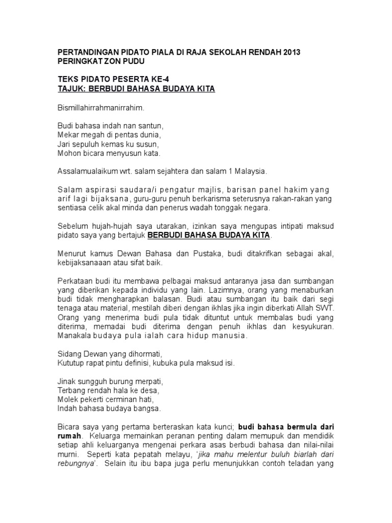 Pidato Berbudi Bahasa Budaya Kita Peringkat Zon Docx