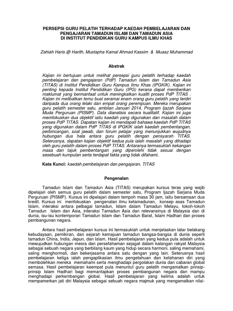 Pdf Pemantapan Pengajaran Dan Pembelajaran Kursus Tamadun Islam Dan Tamadun Asia Titas Kajian Tinjauan Persepsi Pelajar Mohamad Azhari Abu Bakar And Siti Norazilah Mohd Said Academia Edu