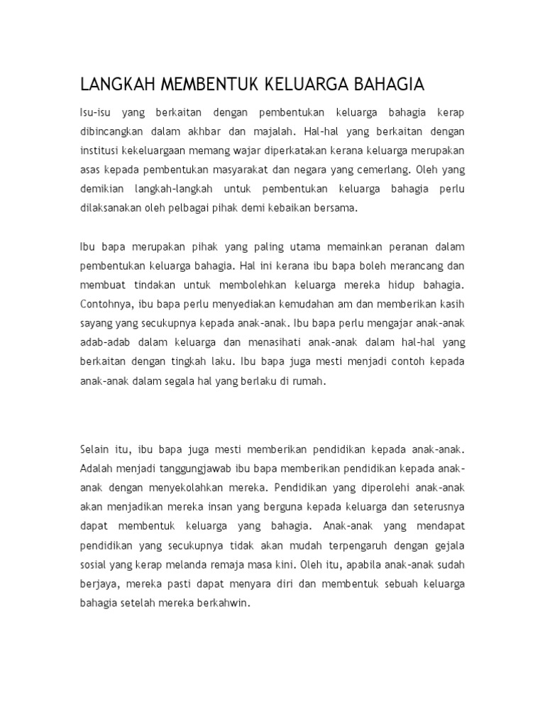 Karangan Ciri Ciri Sebuah Keluarga Bahagia