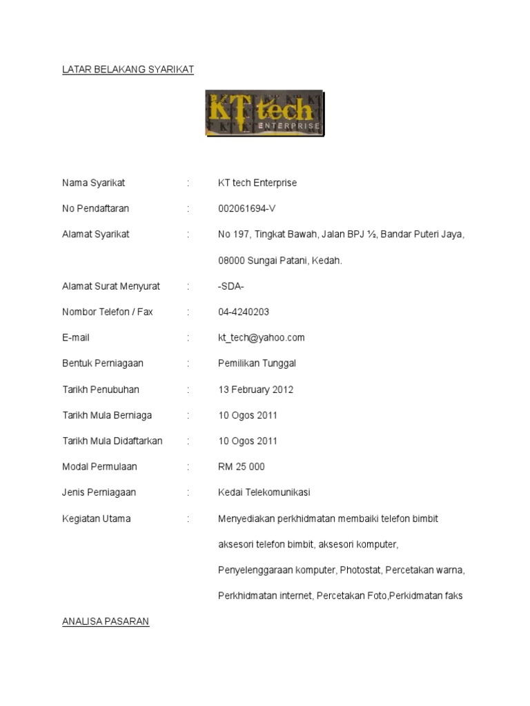 Contoh Rancangan Perniagaan Kedai Komputer