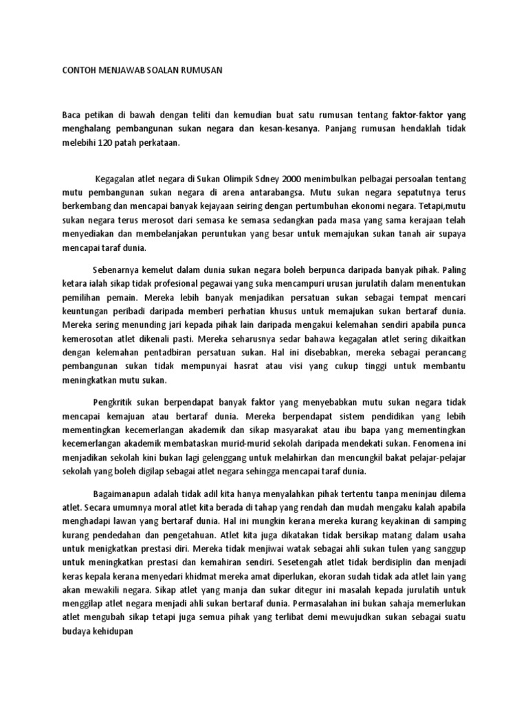 Contoh Soalan Rumusan Bahasa Melayu Pt3 Soalan An