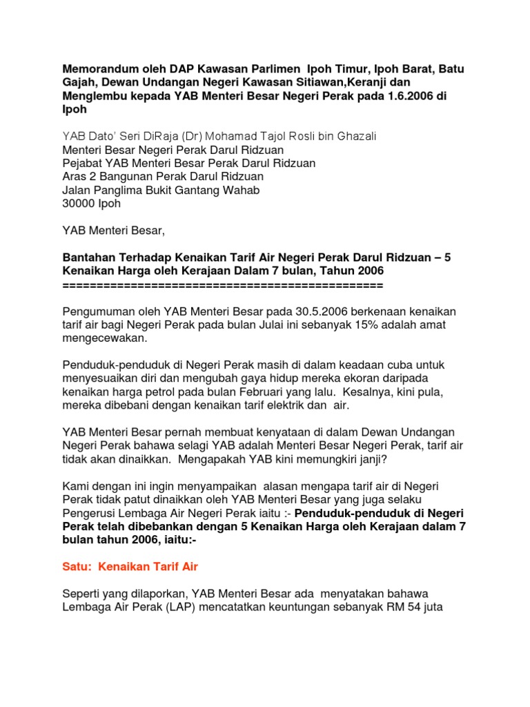 Contoh Surat Rasmi Kepada Menteri Besar Perak Surat Rasmi I