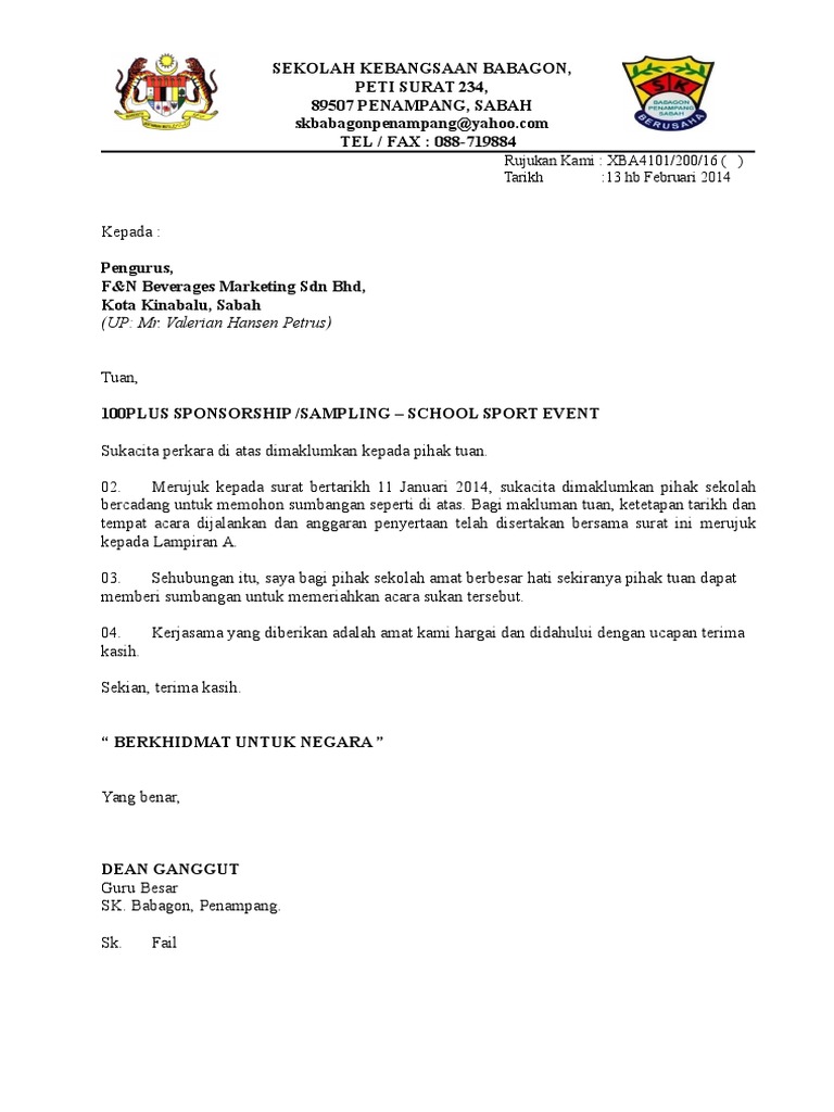 Contoh Surat Rasmi Permohonan Dana J Kosong V