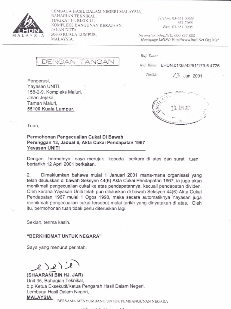 Contoh Surat Pengakuan Sukarela Lhdn