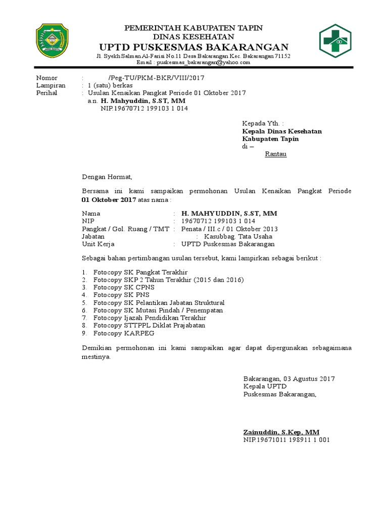 Contoh Surat Pengantar Kenaikan Pangkat Pns