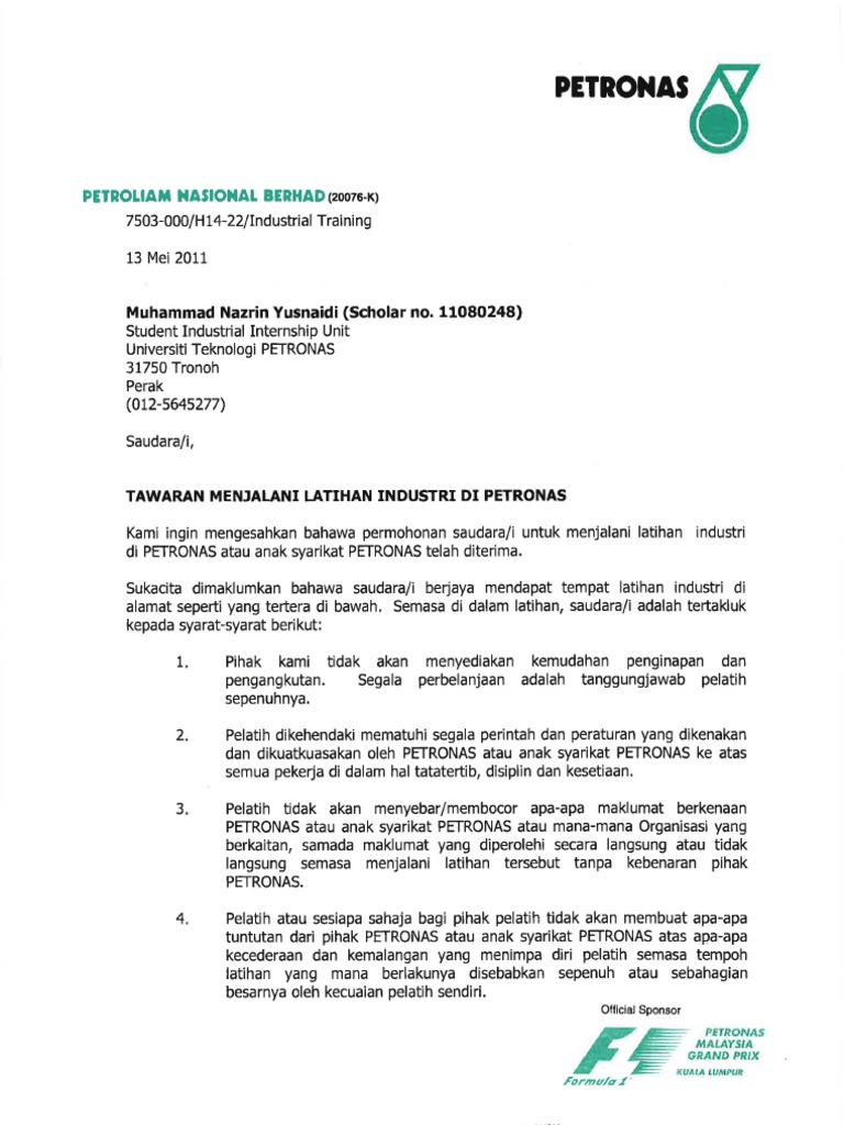 Contoh Cover Letter Internship Latihan Industri Dan Praktikal