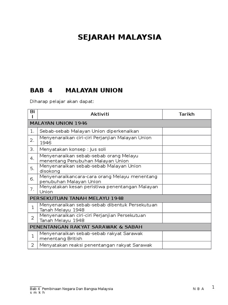 Pengajian Malaysia Malayan Union Persekutuan Tanah Melayu