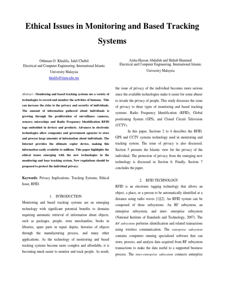 Ethical Issues In Monitoring And Traching Radio Frequency Identification Surveillance