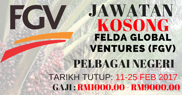 Felda Global Ventures Jawatan Kosong Fgv 19 Juni 16 Julai 2017