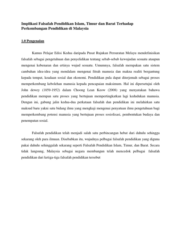 Implikasi Falsafah Pendidikan Timur Barat Islam Pau