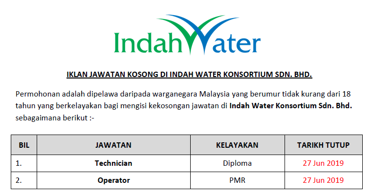 Jawatan Kosong Di Indah Water Konsortium Sdn Bhd Terbuka 2018 Blog Minda Media Sosial