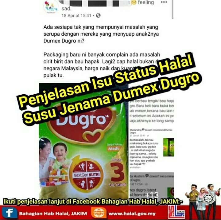 Penjelasan Isu Status Halal Susu Jenama Dumex Dugro