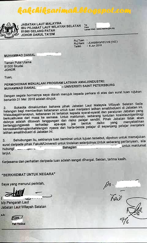 Everything In Life Of Kak Chik Sarimah Danial Intern Di Jabatan Laut Wilayah Selatan Johor