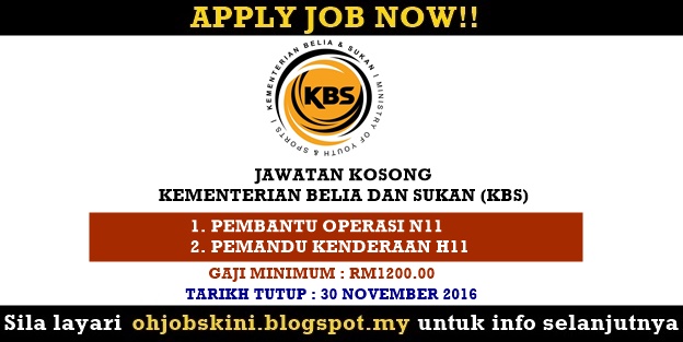 Jawatan kosong kementerian belia dan sukan. Jawatan kosong kementerian belia dan sukan kbs by. Maklumat kekosongan ini adalah seperti yang diiklankan. 3 permohonan adalah diterhadkan untuk seorang pemohon sahaja. Untuk memohon sila ikut langkah seperti di bawah.