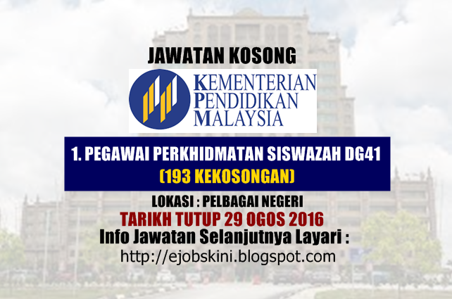 Jawatan Kosong Kementerian Pendidikan Malaysia Moe 29 Ogos 2016 Jawatan Kosong Di Seluruh Malaysia