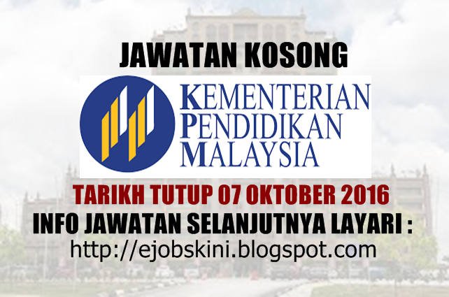 Jawatan Kosong Terbaru Di Kementerian Pendidikan Malaysia Kpm September 2016 Jobcari Com Jawatan Kosong Terkini