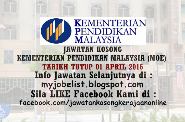Jawatan Kosong Di Kementerian Pendidikan Malaysia Moe 01 April 2016