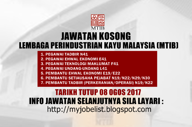 07 236 5694 07 236 5451 emel. Lembaga perindustrian kayu malaysia mtib membuka jawatan kosong terkini sebagai berikut 1. Anything in here will be replaced on browsers that support the canvas element. Pegawai teknologi maklumat syarat kelayakan secara umumnya untuk memohon jawatan yang ditawarkan anda hendaklah memenuhi syarat kelayakan syarat umum seperti yang berikut.