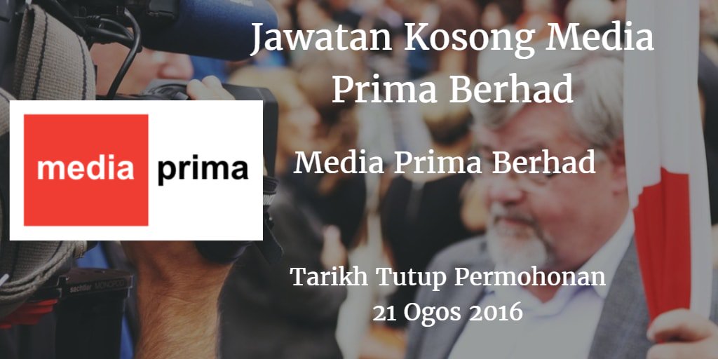 Jawatan Kosong On Twitter Jawatan Kosong Media Prima Berhad 21 Ogos 2016 Https T Co Pxtw0cbggc