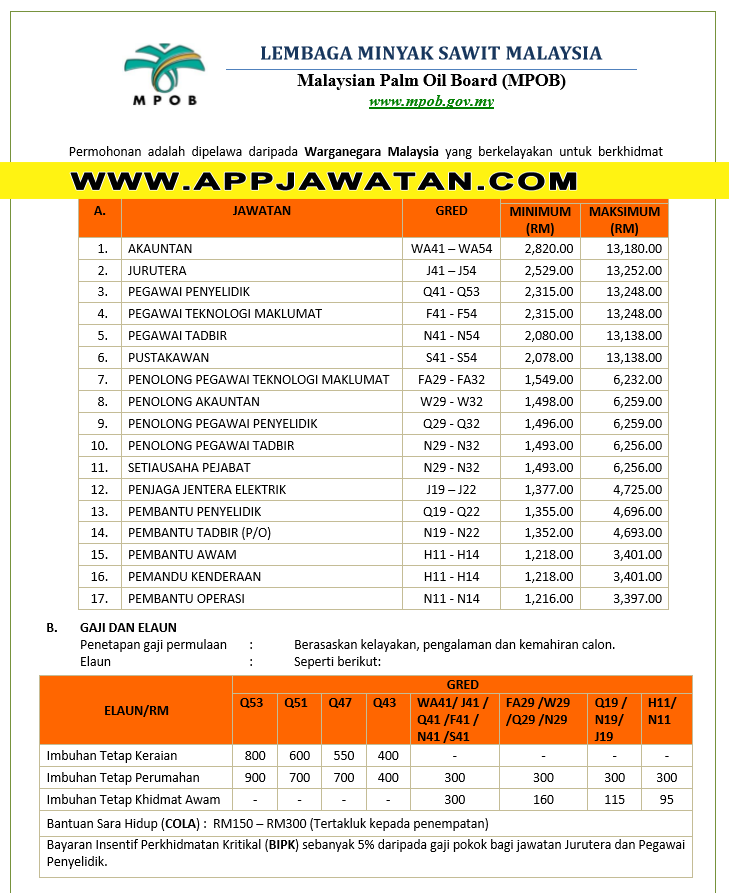 Jawatan Kosong Di Lembaga Minyak Sawit Malaysia Mpob 66 Kekosongan Pelbagai Gred Bidang Jobcari Com Jawatan Kosong Terkini