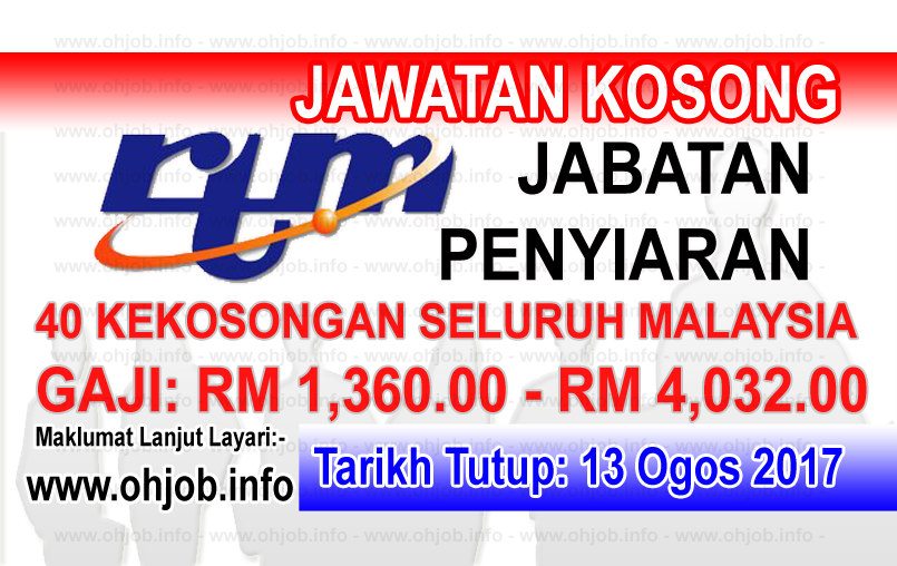 Jawatan Kosong Kerajaan 2017 Di Jabatan Penyiaran Malaysia Rtm 13 Ogos 2017 Appjawatan Malaysia