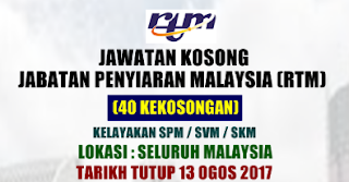 Jawatan Kosong Di Jabatan Penyiaran Malaysia Rtm 13 Ogos 2017