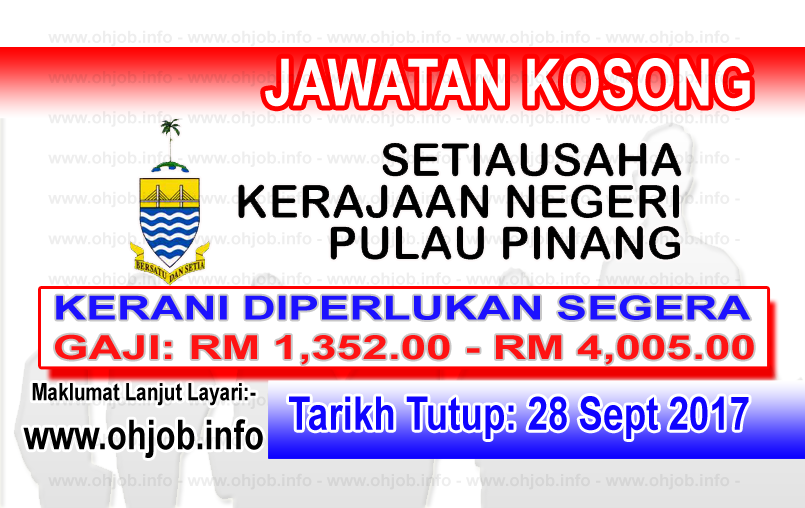 Jawatan kosong suk penang. Paras 25 komtar 10503 pulau pinang tel. Pastikan anda cari kerja kosong kerajaan swasta part time freelance full time sekitar kawasan george town seberang perai butterworth balik pulau tanjung tokong bayan lepas kepala batas bukit mertajam nibong tebal bayan baru bukit jambul jelutong penang hill and pematang pauh di portal kerjaya dahulu. Get new jobs for this search by email. Jawatan kosong di pejabat setiausaha kerajaan negeri pulau pinang mempelawa warganegara malaysia yang berkelayakan dan berumur tidak kurang daripada 18 tahun pada tarikh tutup iklan jawatan untuk memohon jawatan seperti senarai dibawah kepada sesiapa yang berminat bekerja di sektor kerajaan dan swasta yang berkelayakan dipelawa untuk memohon sekarang juga iaitu.