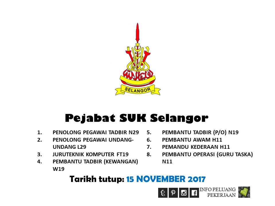 Jawatan Kosong Kerajaan 2017 Di Pejabat Suk Negeri Selangor 15 November 2017 Appjawatan Malaysia