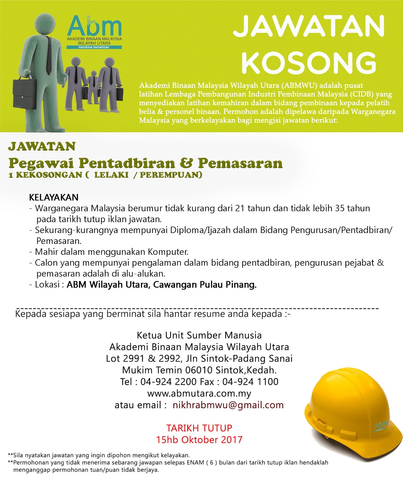 5 Jawatan Kosong Oktober 2017 Akademi Binaan Malaysia Utara