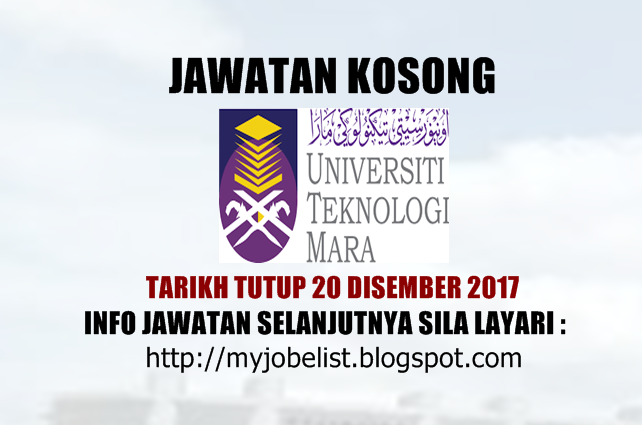 Jawatan kosong terkini di universiti teknologi mara uitm mempelawa warganegara malaysia yang berkelayakan dan berumur tidak kurang daripada 18 tahun pada tarikh tutup iklan jawatan untuk memohon jawatan seperti senarai dibawah kepada sesiapa yang berminat bekerja di sektor kerajaan dan swasta yang berkelayakan dipelawa untuk memohon sekarang juga iaitu.