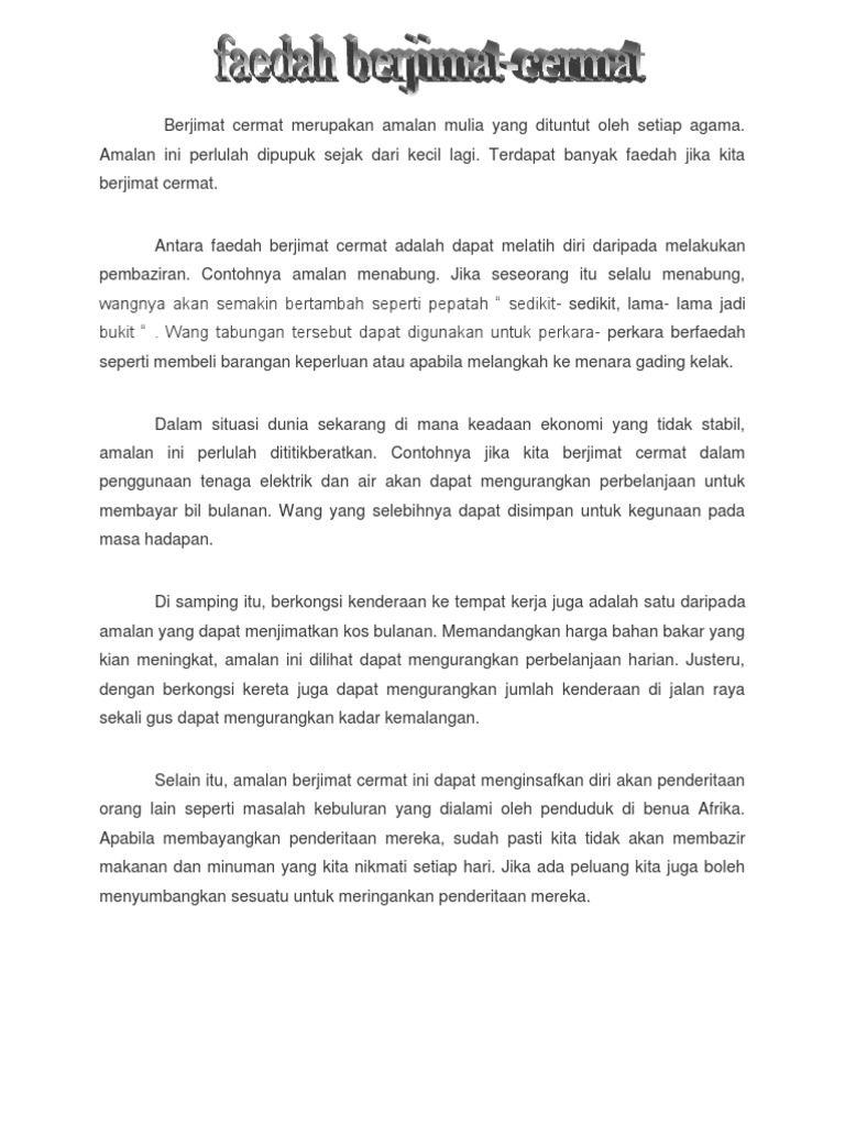 Contoh Contoh Karangan Sekolah Rendah Fakta Berjimat Cermat Amalan Mulia