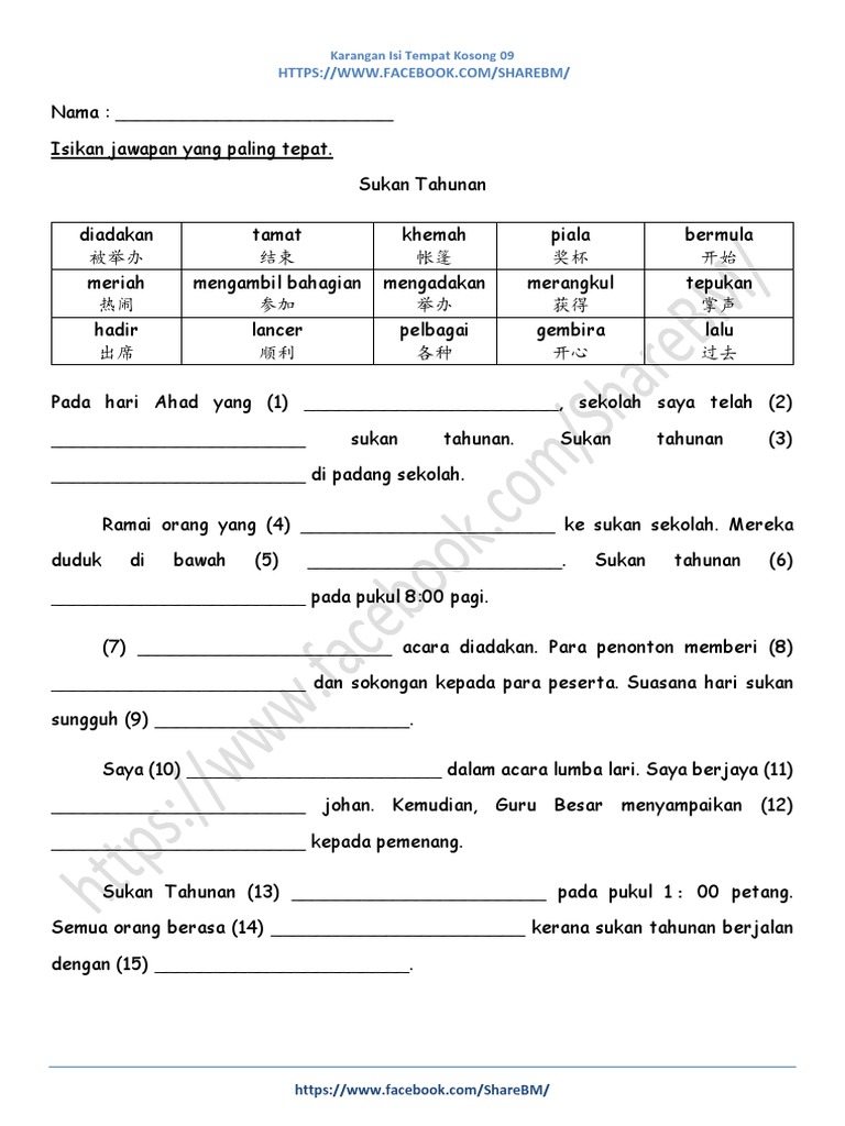 Latihan menulis karangan dengan mengisi tempat kosong admin february 19 2017 penulisan atau karangan merupakan salah satu kertas peperiksaan yang agak sukar untuk mendapat markah cemerlang tidak kira sama ada penulisan bahasa melayu atau penulisan bahasa inggeris. Mereka jenis yang tidak mahu mendengar arahan dan ajaran guru. Keputusan akhir tahun tempat pertama ayah membeli kasut idaman. Bahasa melayu bm grade level.