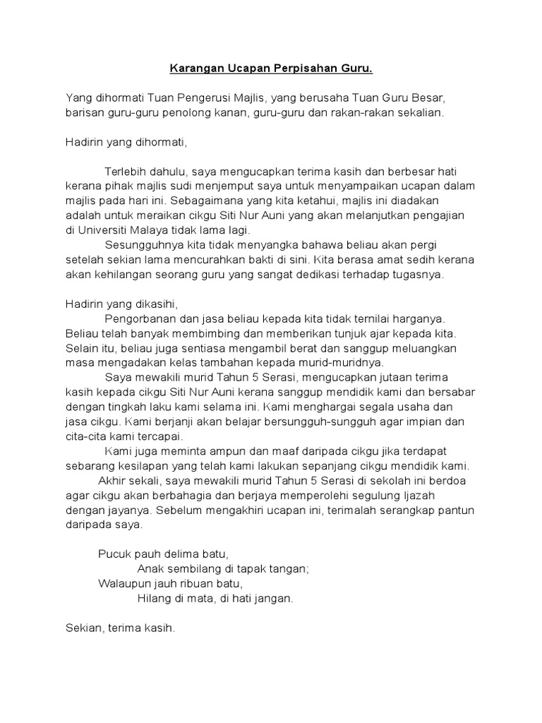 Contoh Karangan Ucapan Perpisahan Guru Sk Rompin