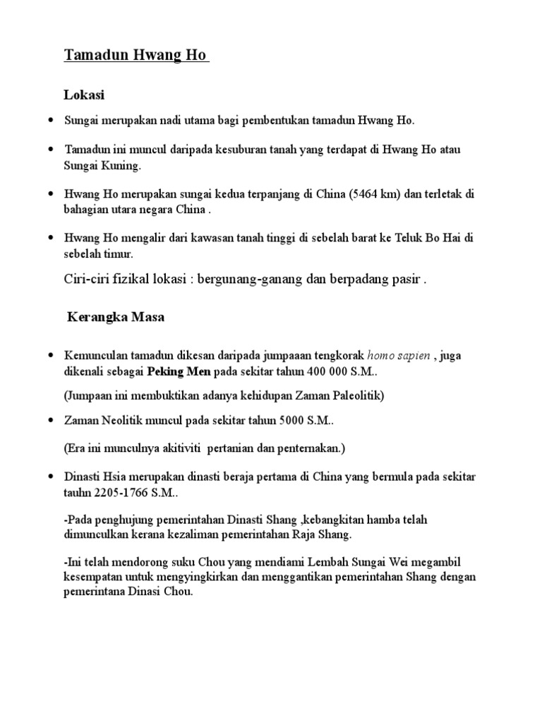 Peningkatan tamadun manusia peningkatan ekonomi d. Hu a ng he 102 viii 48 102 65 108 147 tamadun huang he telah bermula kira kira 4 000 sm. Mengurus hal pertanian tentera kerja awam upacara agama hal ehwal monarki dan undang undang.