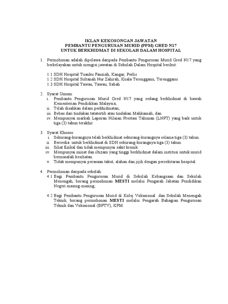 03 Kriteria Permohonan Pembantu Pengurusan Murid N17 Di Sdh