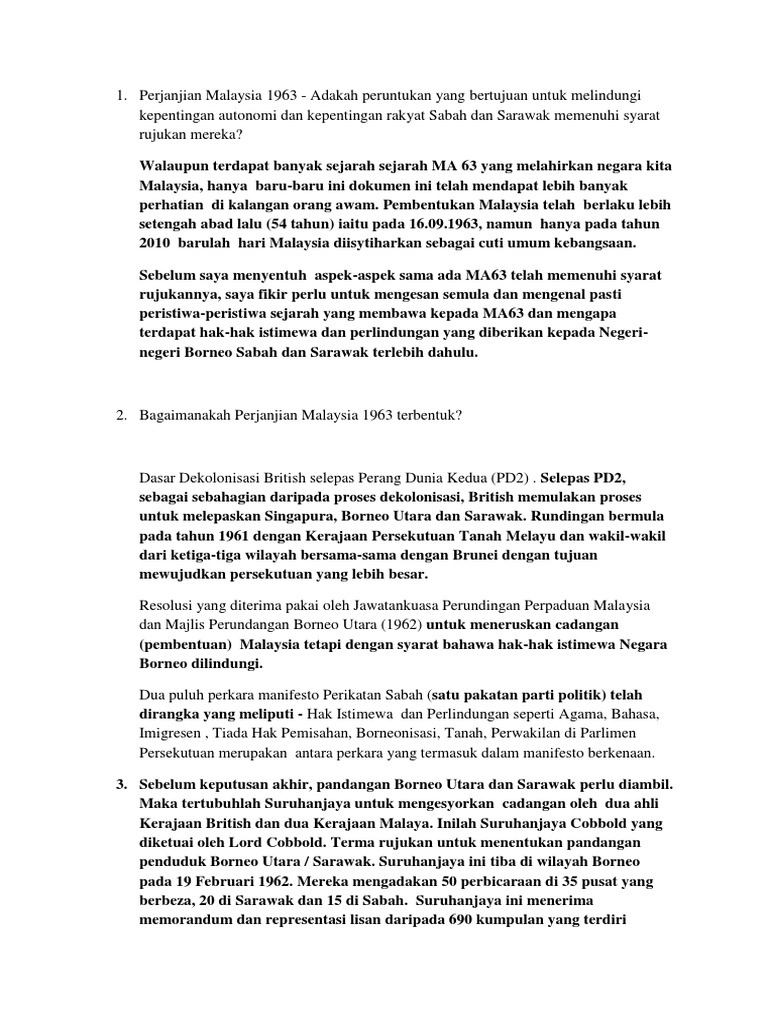 Doc Isi Isi Kandungan Perjanjian 1963 Afiq Naim Academia Edu