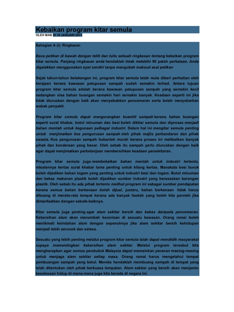 Cuit Cuit Bahasa Karangan Spm Bahagian A Ii Kitar Semula