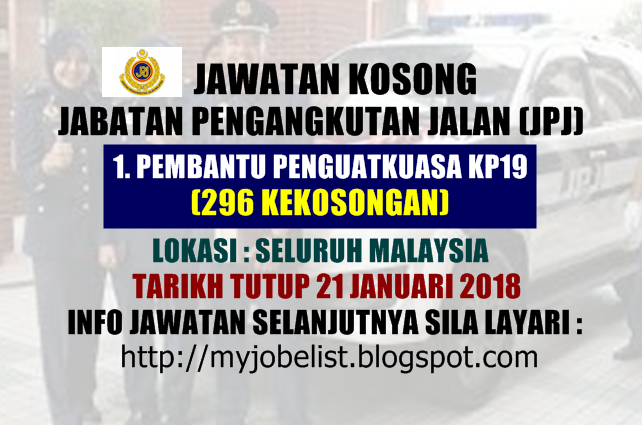 Jawatan Kosong Di Jabatan Pengangkutan Jalan Jpj Pembantu Penguatkuasa Kp19 296 Kekosongan Jobcari Com Jawatan Kosong Terkini
