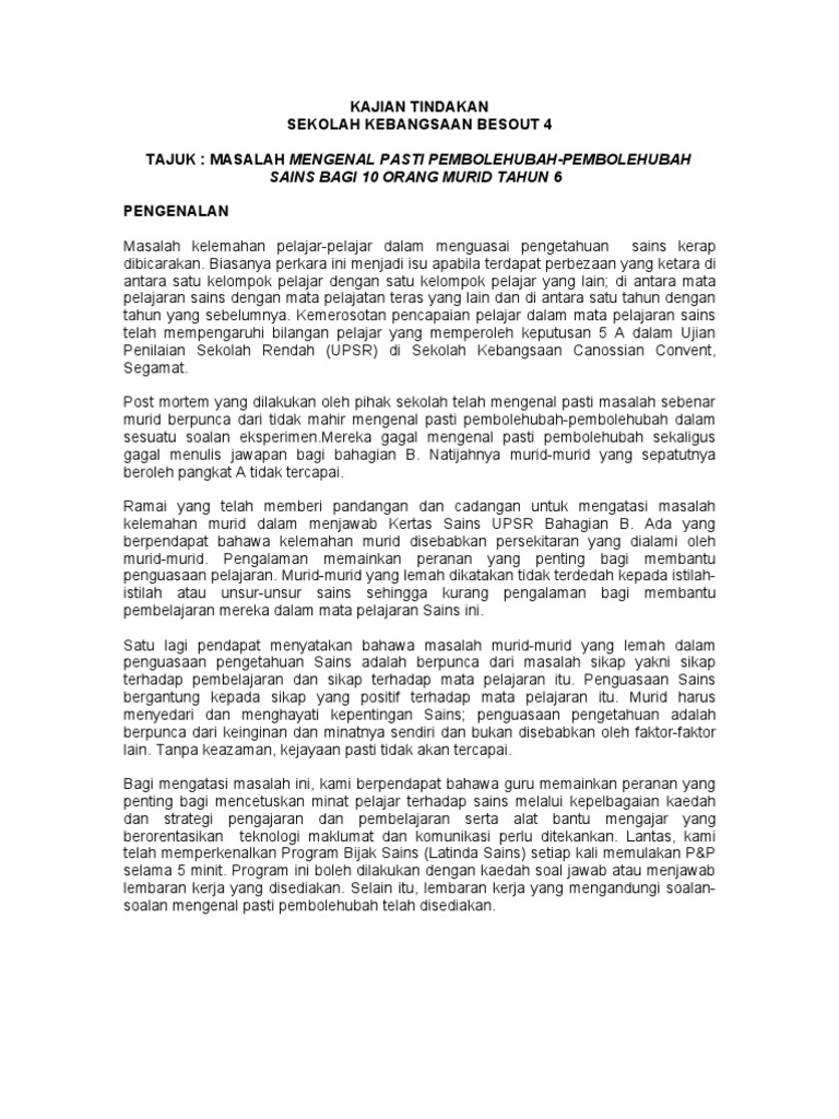 Kertas Cadangan Kajian Tindakan Sains Sekolah Rendah