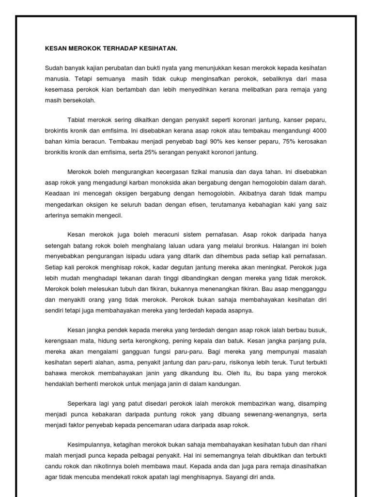 Isi Karangan Rokok Punca Kesan Negatif Merokok Karangan Net