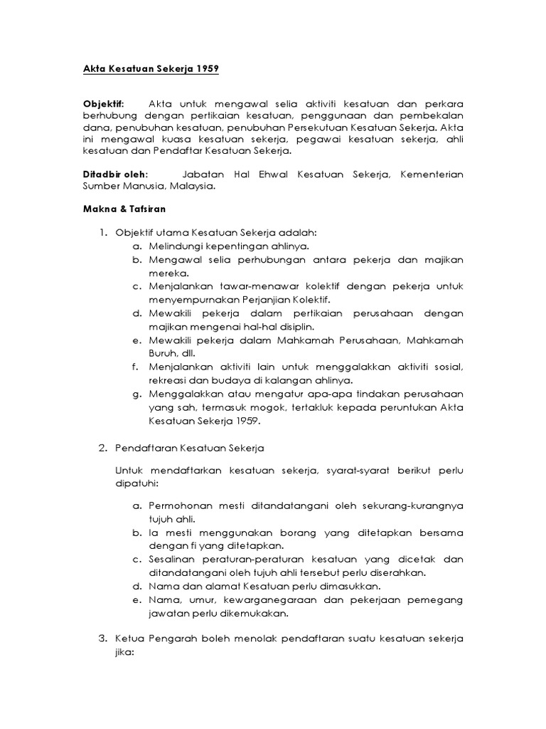 Akta Kerja 1955 Akta 265 Versi Pdf Di Kesatuan Pekerja Pekerja Kelab Semenanjung Malaysia Facebook