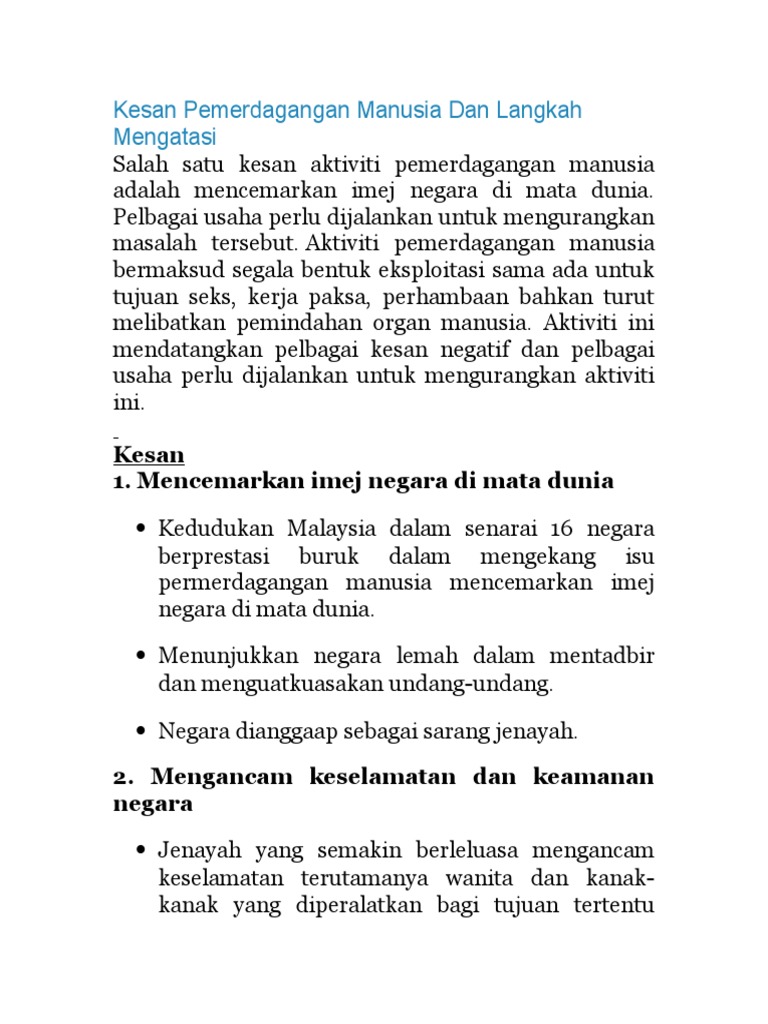 Kesan Pemerdagangan Manusia Dan Langkah Mengatasi