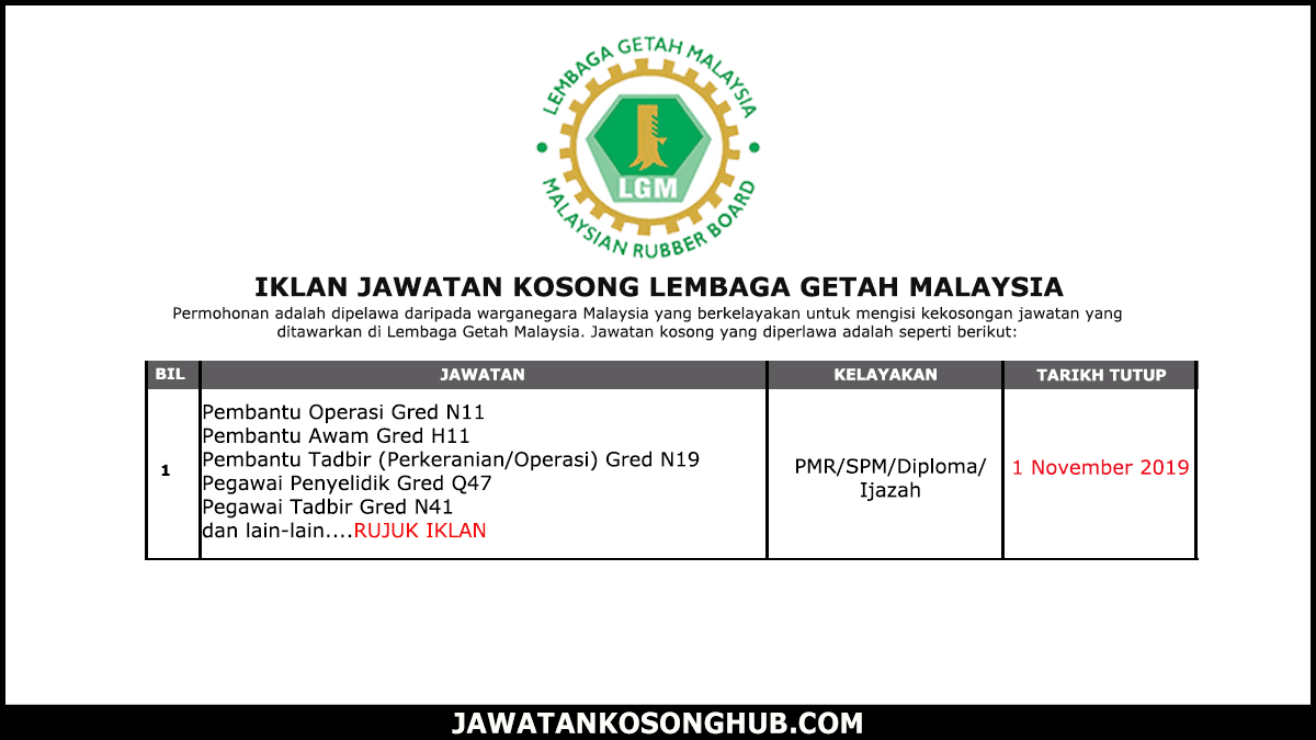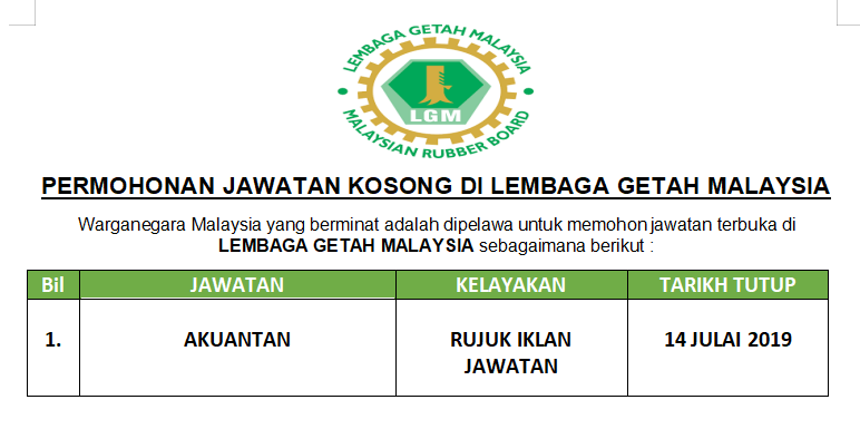 Jawatan Kosong Di Lembaga Getah Malaysia Lgm 2019 Jobcari Com Jawatan Kosong Terkini