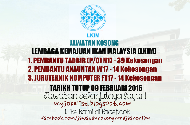 Jawatan Kosong Baru Dibuka Di Lembaga Kemajuan Ikan Malaysia Lkim Jobcari Com Jawatan Kosong Terkini