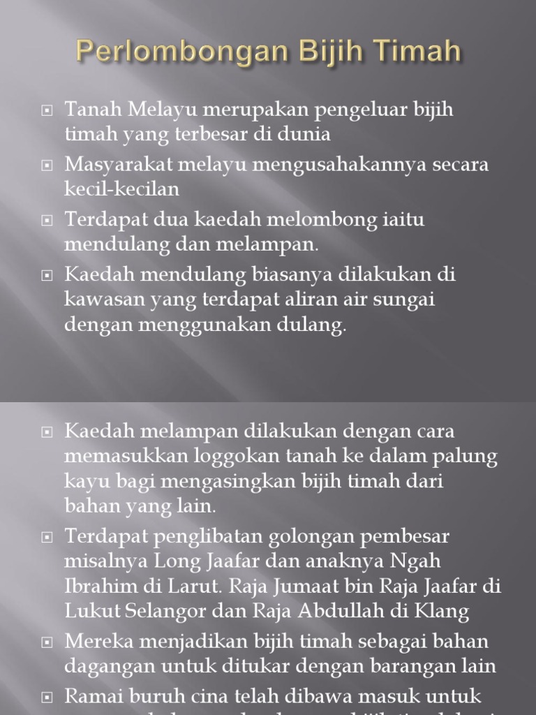 Sejarah Perlombongan Bijih Timah Di Tanah Melayu