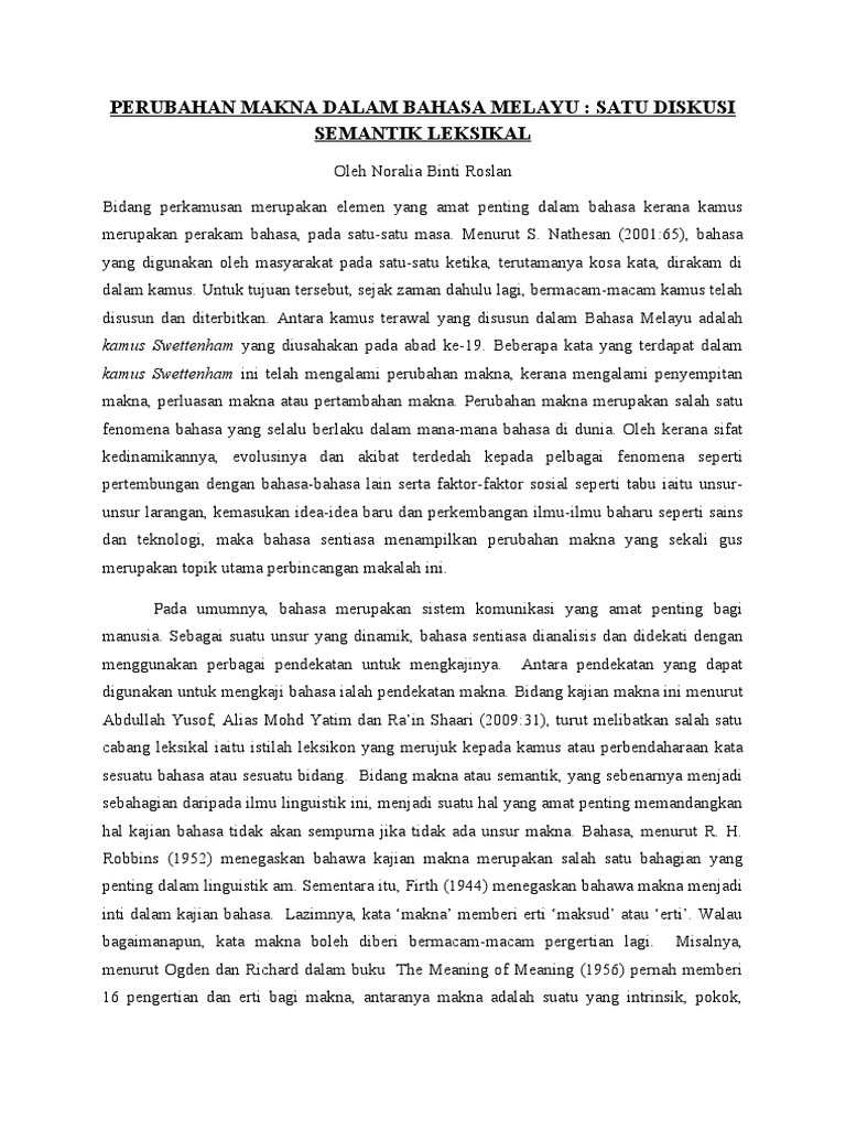 Perubahan Makna Dalam Bahasa Melayu