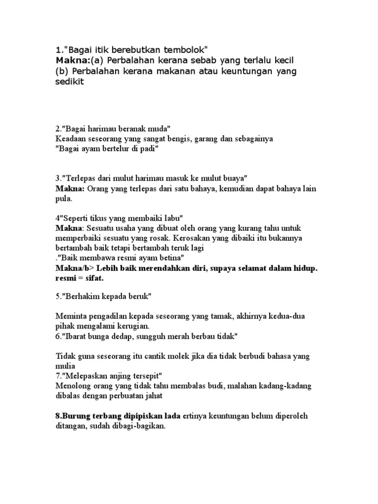 Koleksi Peribahasa Melayu Simpulan Bahasa Dan Maksud