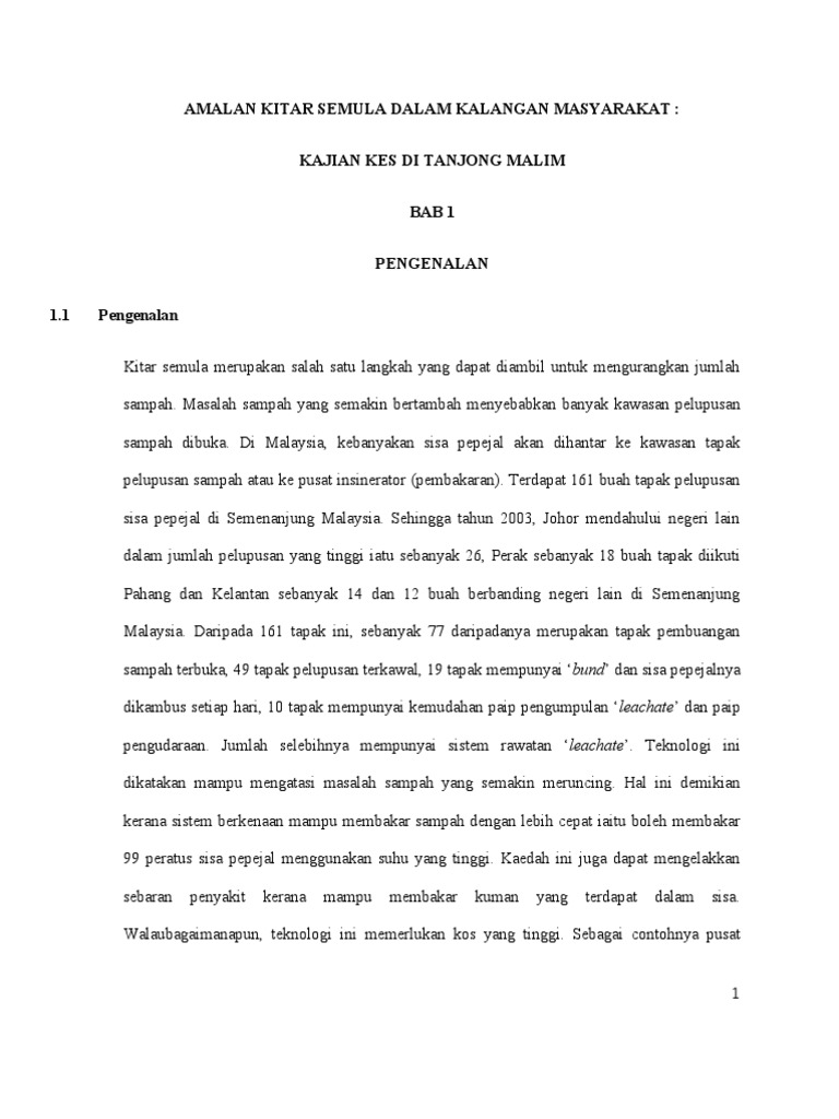 Amalan Kitar Semula Dalam Kalangan Masyarakat Kajian Kes Di Tanjong Malim